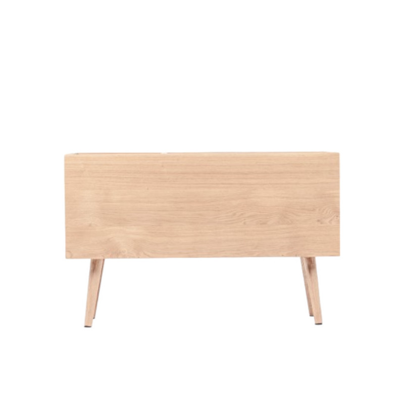 Crafted entirely from solid oak and finished with natural oil-wax, the piece highlights the wood’s beautiful grain, warm tones, and unique character. Its surface is smooth yet durable, protected from moisture and stains. Each stand is one-of-a-kind—thanks to both the natural variation in the wood and the care put into its handmade construction.