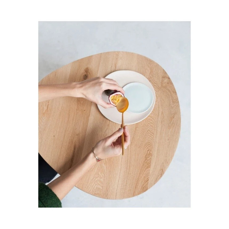 The tabletop is carefully crafted from premium oak, treated with natural oil-wax to enhance the rich grain patterns while protecting the surface from stains, moisture, and scratches. Each piece is truly one of a kind, thanks to the natural variations in the wood. The smooth, rounded egg shape lends the table a sense of softness and elegance, perfectly in tune with current trends that favor organic and natural forms.